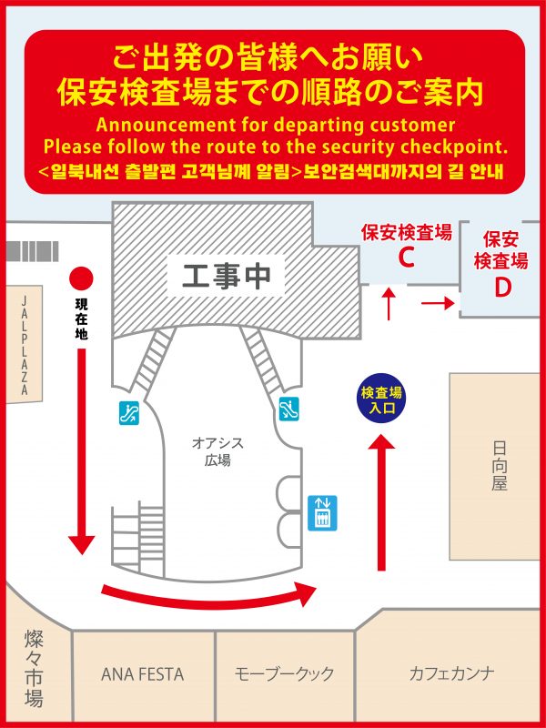 2階保安検査場の改修工事のお知らせ(期間:2026年1月7日(水)~3月24日(火))