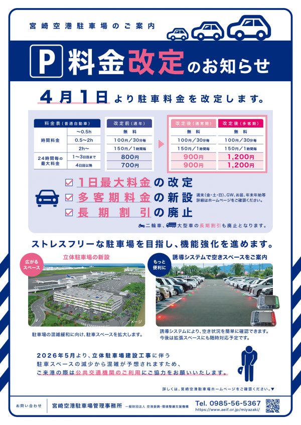 宮崎空港駐車場料金改定のお知らせ