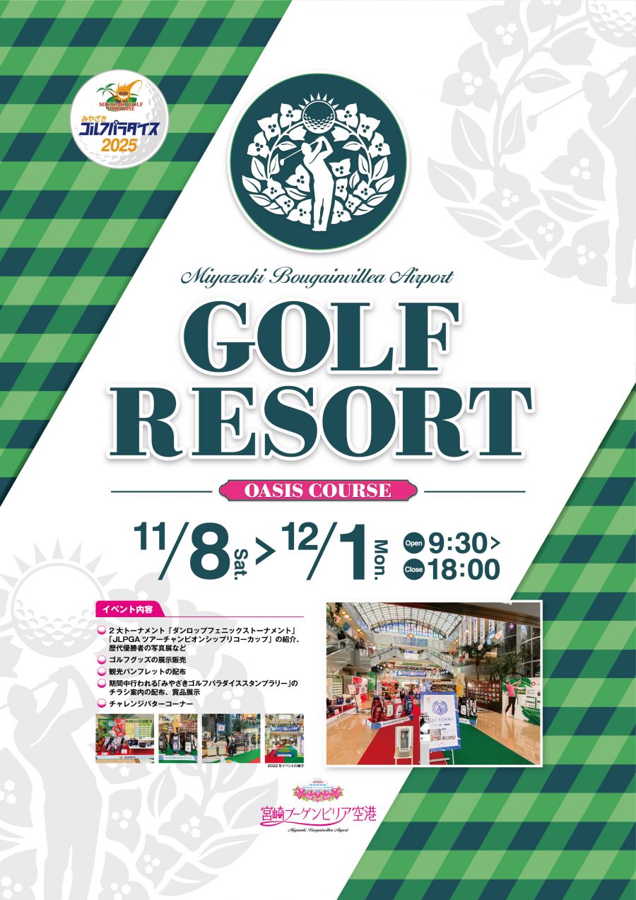 この大会を記念し、宮崎ブーゲンビリア空港ではゴルフ一色のイベント「Miyazaki Bougainvillea Airport Golf Resort~oasis course~」をオアシス広場にて毎年開催しております!