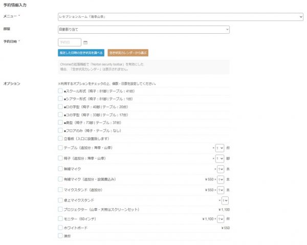 予約受付ページ