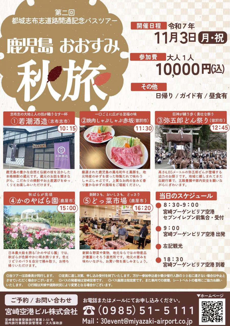 11月3日(月・祝)に宮崎空港発のバスツアーを開催します。