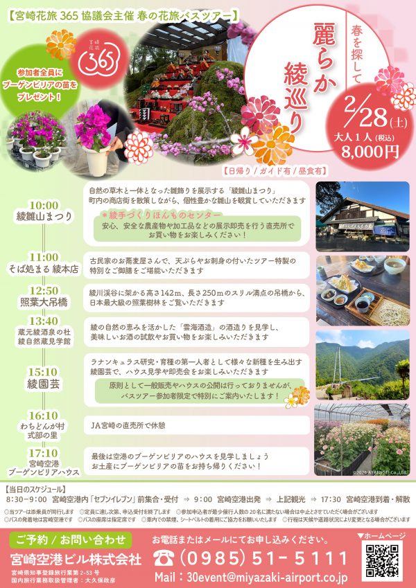 宮崎花旅365バスツアー「春の花旅 春を探して 麗らか綾巡り」